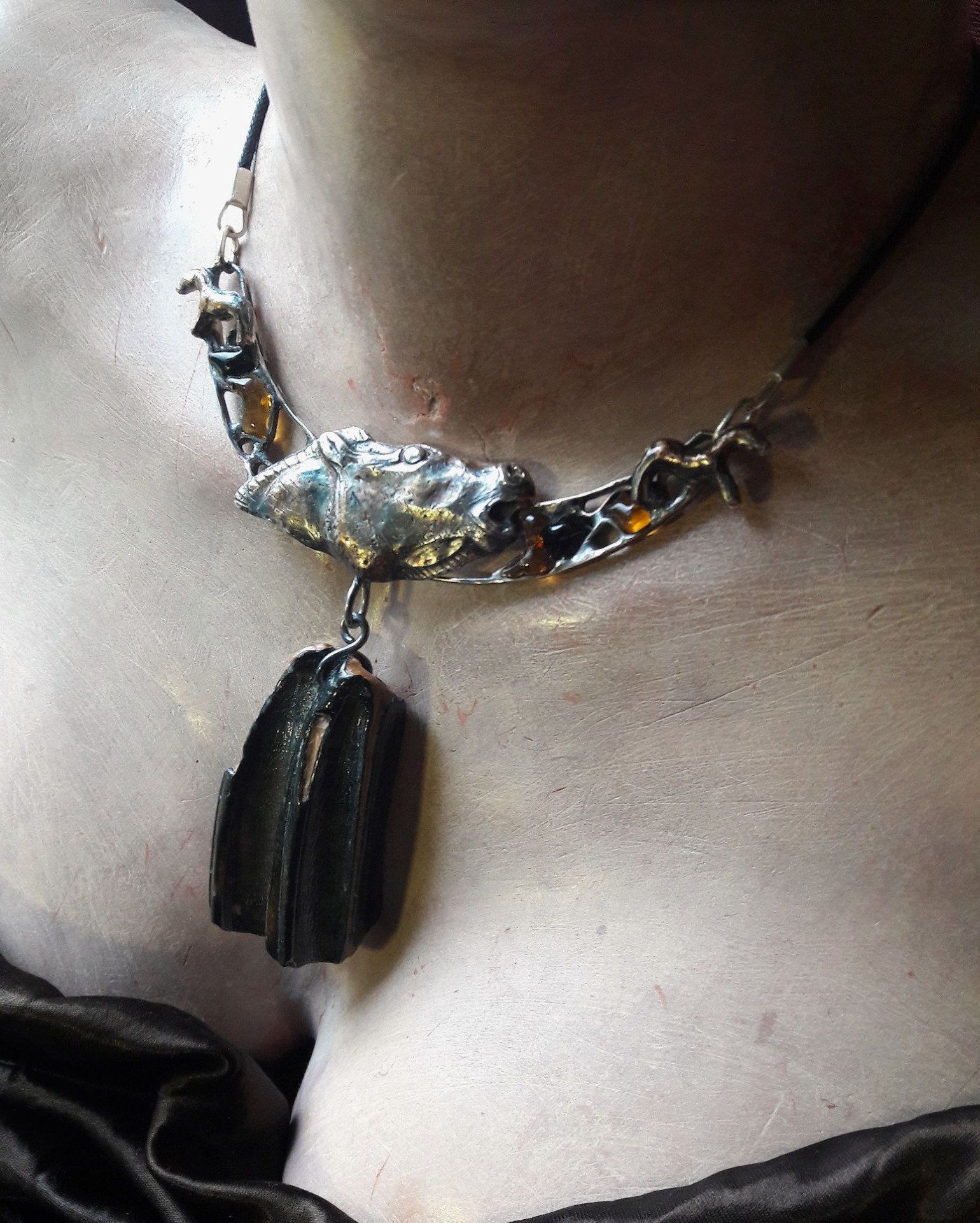 Collier inspiré de l'art pariétal,orné d'une dent de cheval préhistorique véritable,