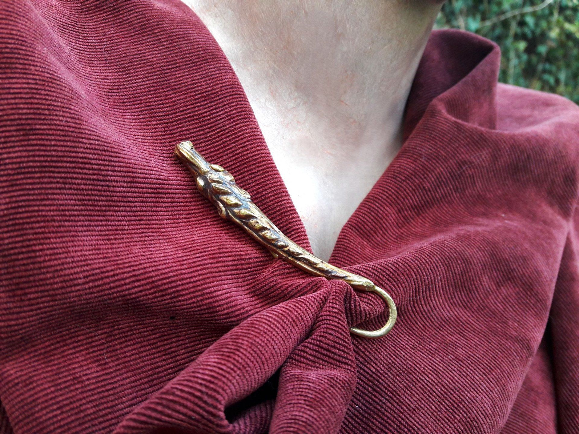 Fibule d'inspiration celtique avec motif tête de cheval stylisée